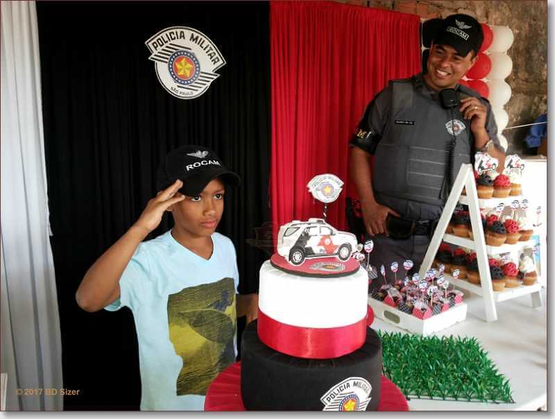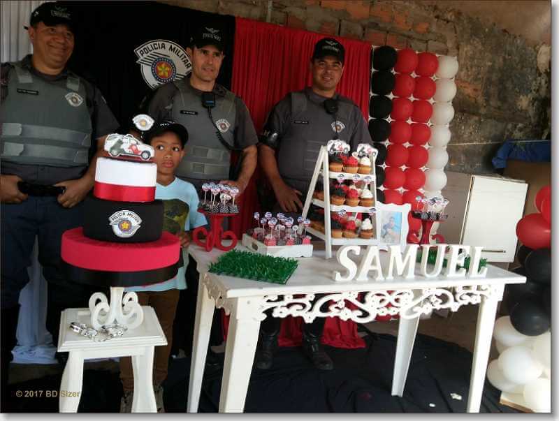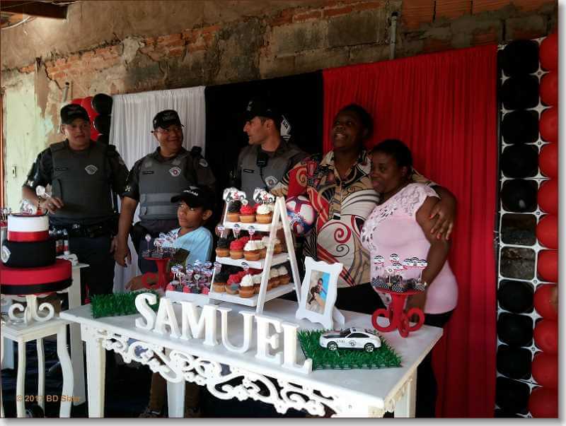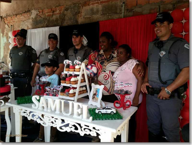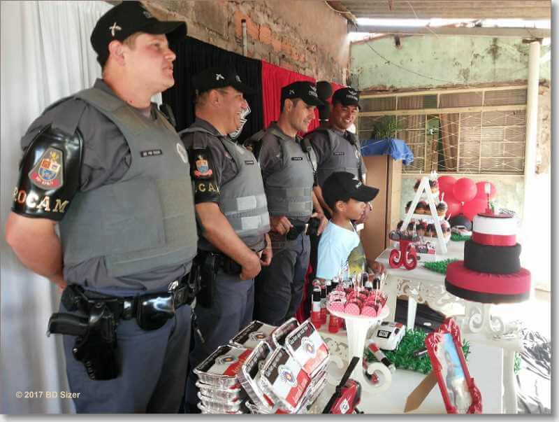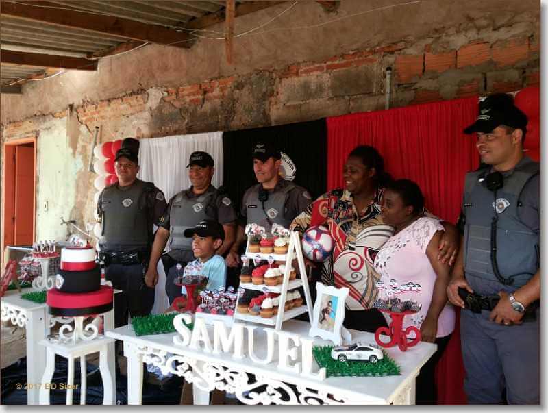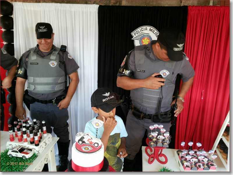 O pequeno Samuel é morador na região do Jd. Pacaembu e neste domingo, 09-07-2017, ele completou 8 anos. Com a pouca idade, mas com grande imaginação, ele sonha em ser um policial militar. E quando estava reunido com seus amigos e parentes, foi surpreendido por policiais da ROCAM. Gabriel ficou muitíssimo feliz e fez também a felicidade de todos que ali estavam. O www.comandovp.com.br esteve acompanhando mais uma vez esse gesto simples e de muita humildade destes homens que arriscam sua própria vida, para defender a vida da sociedade.