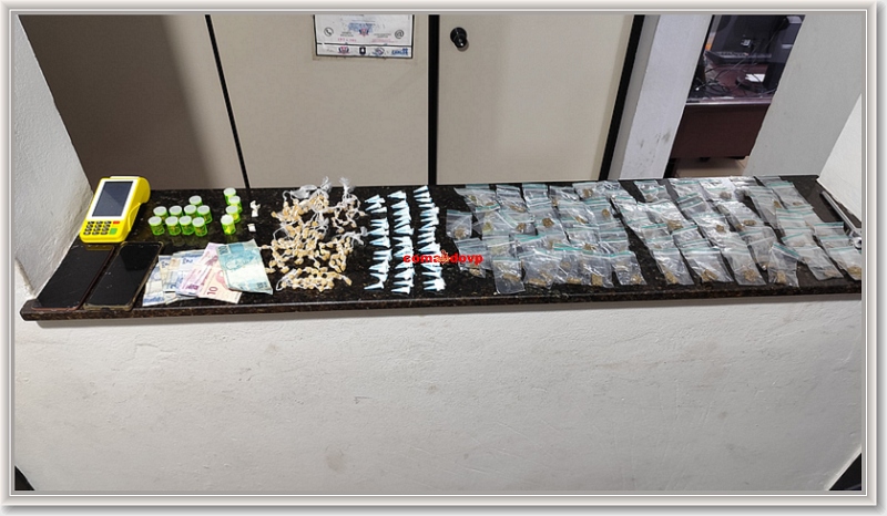 De acordo com informações, o cabo Perez, o cabo Amaral e o soldado Albuquerque estavam em patrulhamento preventivo, quando avistaram um indivíduo vendendo drogas para um usuário. Quando eles perceberam a aproximação dos policiais, jogaram as drogas ao solo. Ambos foram abordados e em revista pessoal, foram localizados com V.T.S, 8 porções de maconha e R$ 135,00. Ele acabou confessando que estava no local vendendo drogas.  Ato continuo, em vistoria nas imediações,  mais exato,  no para barro de um veículo marca Mercedez, modelo Casse A, foi localizado o restante dos entorpecentes. A dupla foi encaminhada para a Central de Polícia Judiciária, onde o traficante foi autuado em flagrante por tráfico de drogas e recolhido ao Centro de Triagem de São Carlos. O usuário foi liberado.