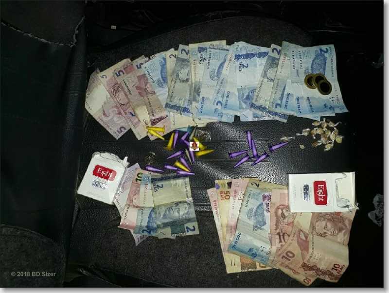 Segundo a PM, N. P. de 20 anos, moradora do Jd. Icaraí, juntamente com um jovem de 18 foram abordados pelo cabo Perez, soldado Caio Bruno e drogas foram localizadas com a mulher. A PM foi até a residência da mesma onde teve a entrada franqueada por sua mãe e lá foram localizados drogas e dinheiro. O casal foi conduzido ao Plantão Policial de São Carlos, a mulher foi presa e o homem liberado.