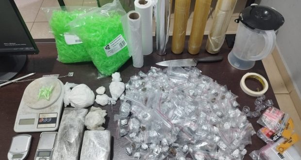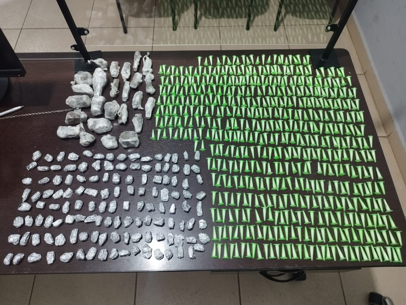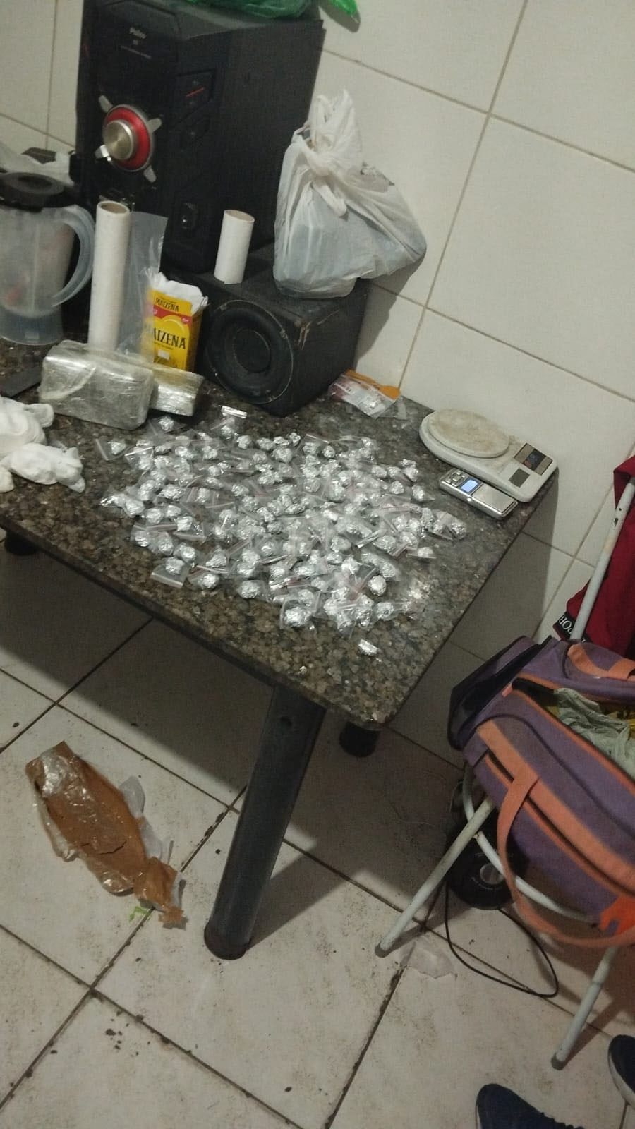 De acordo com informações, policiais da ROCAM tomaram conhecimento que um veículo GM/Onix estaria sendo usado por traficante para transportar drogas. Os policiais da ROCAM, Bruno Caio e o soldado Alvarez saíram em patrulhamento e conseguiram abordar o veículo na Rua Coronel Leopoldo Prado. Dentro do carro tinha dois sujeitos. Sendo um maior de idade e outro menor. Com o adolescente foi encontrada uma sacola contendo 130 porções pequenas de maconha, 25 porções médias da mesma droga, maconha, 546 micro tubos de cocaína R$ 20,00. Mais denúncias chegaram para os policiais, que se deslocaram até a Rua Luiz Arnaldo Wenzel. Neste local mais três pessoas foram detidas. Sendo dois masculinos e uma feminina. Eles estavam preparando drogas para a venda. A ocorrência foi encaminhada para a Central de Polícia Judiciária, onde Vinícius foi autuado em flagrante por tráfico de drogas e recolhido ao Centro de Triagem. Os demais foram liberados, mas deverão ser investigados pela DISE.