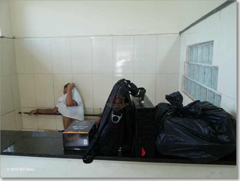 Os policiais constaram que o carro era o mesmo roubado de dois empresários na noite anterior. Os PMs tinham conhecimento que três indivíduos, dois armados com armas de fogo, teriam assaltado os empresários e roubado o carro. Ainda de acordo com a PM, as vítimas relataram que os meliantes usavam agasalhos de frio da cor azul e preta. A dupla foi reconhecida pelas vítimas como sendo a mesma que praticou o roubo. Os indiciados foram encaminhados ao Plantão Policial, onde os policiais apresentaram a ocorrência e o delegado de plantão Dr. Gilberto de Aquino se deslocou até a casa onde estava o veículo roubado e lá apreendeu um notebook, capacetes agasalhos da cor preta e azul e documentos em nomes de terceiros. Alguns documentos foram reconhecidos por uma pessoa como sendo seus e esta disse que havia sido vítima de roubo ocorrido na data de sexta-feira, 25-11. Os agasalhos apreendidos também foram reconhecidos por uma das vítimas, a qual afirmou que na oportunidade do roubo, Edras usava a blusa azul e Elton usava o blusão preto. Uma testemunha também esteve fazendo o reconhecimento e confirmou ao delegado que os detidos eram os assaltantes. Na delegacia os policiais civis fizeram uma pesquisa dos documentos apreendidos na casa onde foi localizado o veículo e constaram que alguns eram de vítimas de roubos e furtos, onde uma dupla usando uma moto cometeu os delitos. Na residência de Elton foram localizadas duas motos e uma placa de uma terceira, sendo que a polícia acredita que a placa possa ter sido usada para colocar sob a placa das motos na hora dos crimes. A Polícia Cientifica foi acionada para periciar o carro produto de roubo, o qual estava com danos na porta direita, que provavelmente bateu ao adentrar na garagem. Diante da situação, o delegado Gilberto de Aquino ratificou a voz de prisão e recolheu os dois ao Centro de Triagem de São Carlos, os quais tiveram suas prisões preventivas concedidas pela justiça. O carro roubado foi entregue para as vítimas.