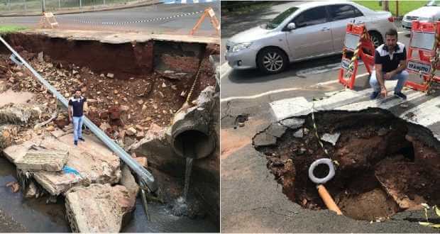 “É certo que com as recentes chuvas houve muitos estragos na cidade, como desmoronamentos das encostas de córregos, abertura de buracos, mas já foram intensificados os trabalhos e nesse local nada foi feito ainda. Faço apelo aos setores competentes que deem uma atenção para esse local, que está muito perigoso, pois o chão está oco e há um grande fluxo de veículos”, completou o vereador.