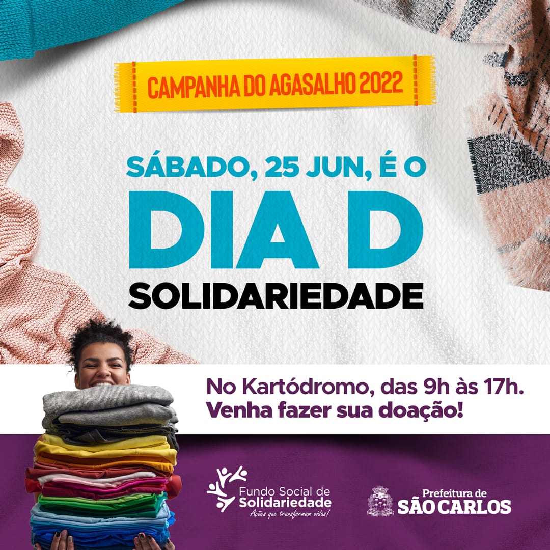 O Fundo Social de Solidariedade de São Carlos realiza no próximo sábado, dia 25 de junho, das 9h às 17h, na Praça do Kartódromo, o “Dia D” da Campanha do Agasalho 2022.