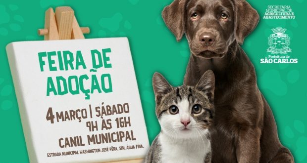A Prefeitura de São Carlos, por meio do Departamento de Defesa Animal da Secretaria Municipal de Agricultura e Abastecimento, realiza, neste sábado (04/03), mais uma feira de adoção animal no Canil Municipal.