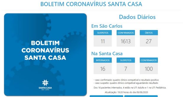 Lembrando que a Santa Casa considera como caso confirmado, pacientes com quadro clínico compatível e resultado positivo confirmado por exame de laboratório. E caso suspeito, como recomenda o Ministério da Saúde, todos os pacientes que apresentem sintomas gripais, mas que ainda aguardam resultado de laboratório.