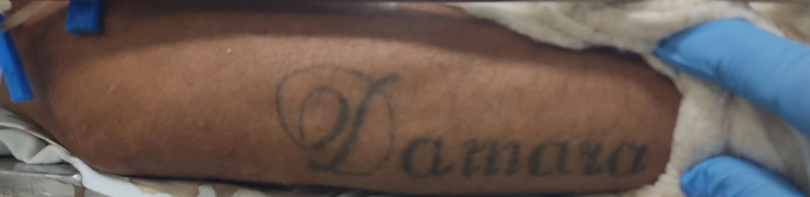 O homem é de pele parda, cabelos castanhos, apresenta tatuagens pelo corpo, com os nomes “Antoniel” e “Damara”, e tem cerca de 1,70 m de altura e 70 quilos.