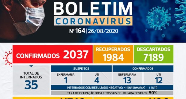 Na rede privada 3 pessoas estão internadas na UTI adulto neste momento, 1 com resultado positivo para COVID-19 e 2 com suspeita da doença. Na enfermaria nenhuma pessoa está internada no momento. Esses números já estão contabilizados no total de internações.