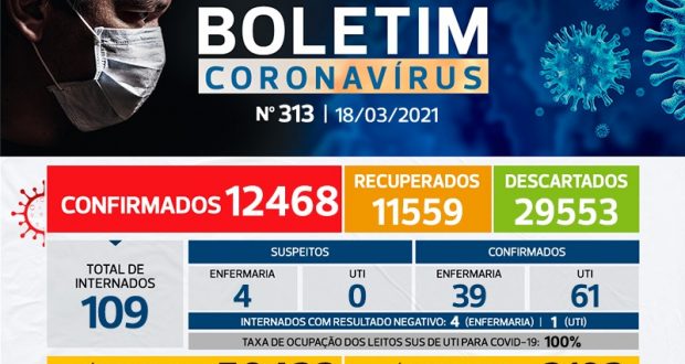 Dos 12.468 casos positivos, 11.749 pessoas apresentaram síndrome gripal e não foram internadas, 16 óbitos sem internação, 703 pessoas precisaram de internação devido a COVID-19, 465 receberam alta hospitalar e 155 positivos internados foram a óbito.11.559 pessoas já se recuperaram totalmente da doença. 29.553 casos suspeitos já foram descartados para o novo coronavírus (185 resultados negativos foram liberados hoje).
