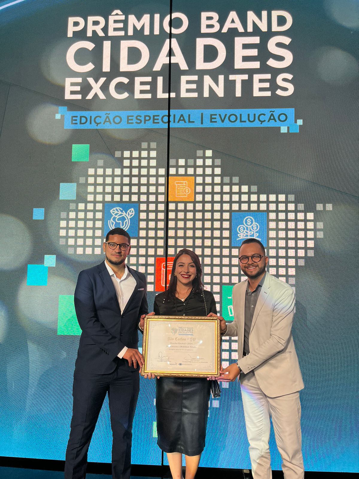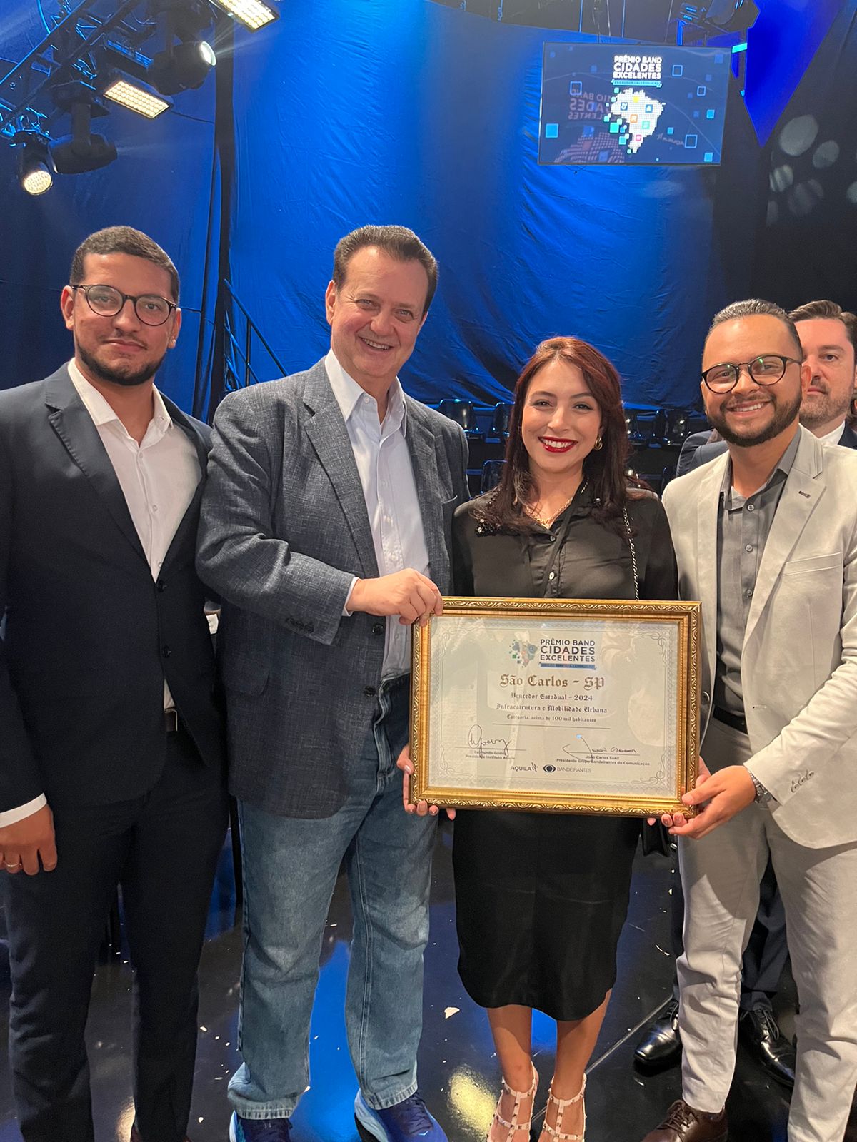 São Carlos recebeu no último sábado (08/06), na capital paulista, o Prêmio Band Cidades Excelentes – etapa estadual 2024 na categoria Infraestrutura e Mobilidade Urbana – Municípios acima de 100 mil habitantes. Entre as 78 cidades paulistas com mais de 100 mil habitantes, São Carlos apresentou a melhor evolução neste quesito entre os anos de 2021 e 2024 e obteve o maior índice, 93,96.