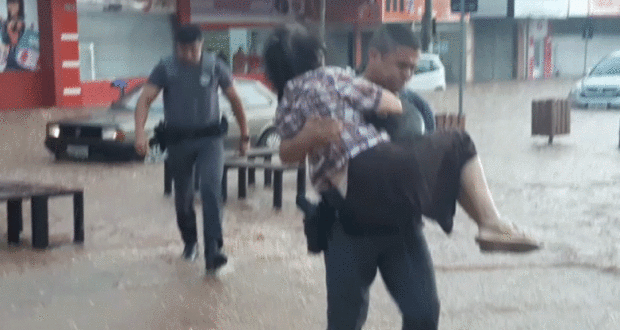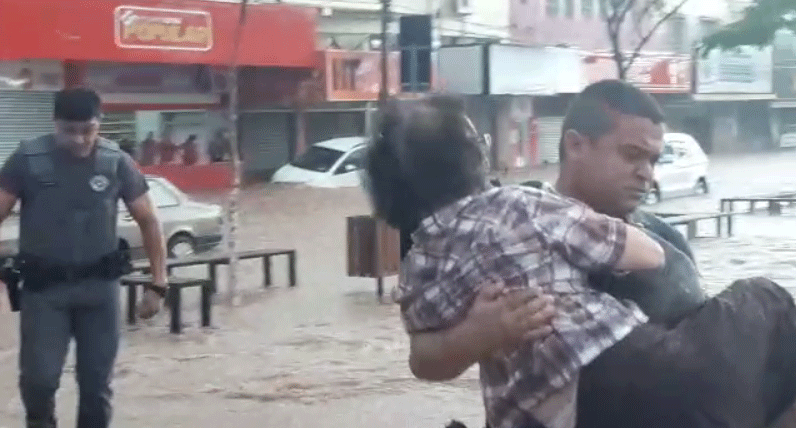 Um sargento da Polícia Militar de São Carlos-SP, ao ver uma mulher no meio da enxurrada nesta tarde de quinta-feira, 26 de novembro de 2020, no Centro De São Carlos-SP, não mediu esforços para socorrer a vítima.