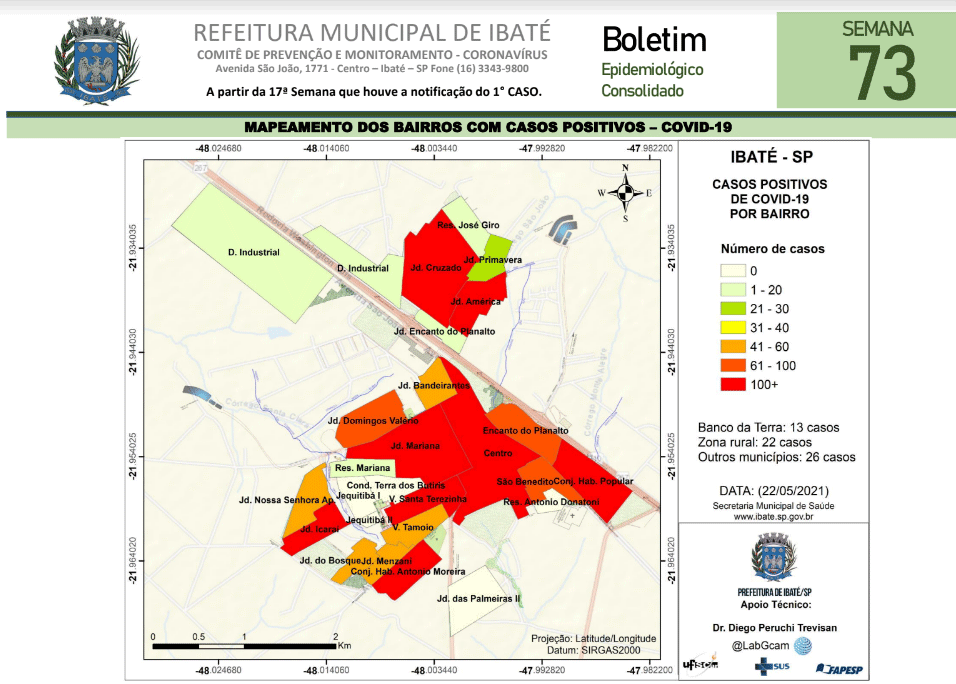 A Secretaria Municipal de Saúde de Ibaté, através da Vigilância Epidemiológica e do Gabinete de Prevenção e Monitoramento do Coronavírus, divulgou nesta segunda-feira, 24 de maio, o Boletim Epidemiológico Consolidado da 73ª Semana sobre a situação da Covid-19, em Ibaté.