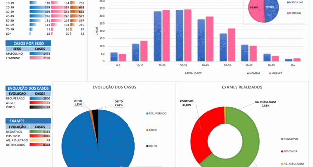 Desde o registro do primeiro caso na cidade –em abril de 2020 – até o último sábado, a cidade registrava um total de 5.313casos negativados (63,42%) e 0,58% aguardavam resultados de exames.