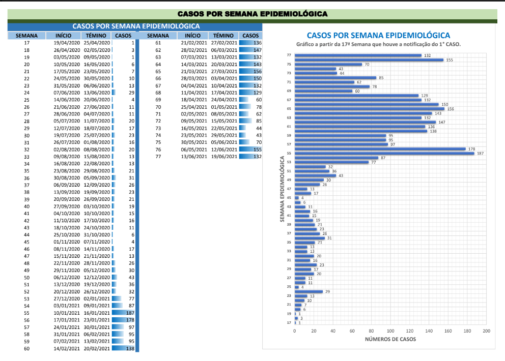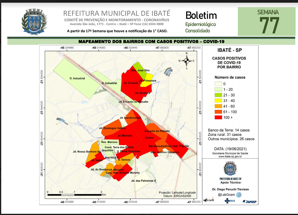 A Secretaria Municipal de Saúde de Ibaté, através da Vigilância Epidemiológica e do Gabinete de Prevenção e Monitoramento do Coronavírus, divulgou nesta segunda-feira, 21 de junho, o Boletim Epidemiológico Consolidado da 77ª Semana sobre a situação da Covid-19, em Ibaté.
