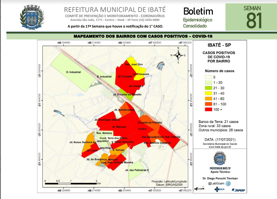 A Secretaria Municipal de Saúde de Ibaté, através da Vigilância Epidemiológica e do Gabinete de Prevenção e Monitoramento do Coronavírus, divulgou nesta segunda-feira, 19 de julho, o Boletim Epidemiológico Consolidado da 81ª Semana sobre a situação da Covid-19, em Ibaté.