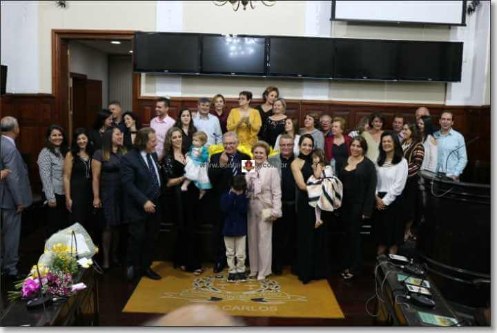 O Presidente do Sindicato do Comércio Varejista de São Carlos e Região, Paulo Roberto Gullo, participou na noite desde sábado (27), de sessão solene na Câmara Municipal de São Carlos, que concedeu o título de Comerciante do Ano, a José Doniseti Vieira, do Jaú Serve Supermercado, e o título de Comerciante Homenageada do Ano de 2019, a Irene Chiari Faccin, do Colégio Cecília Meireles.