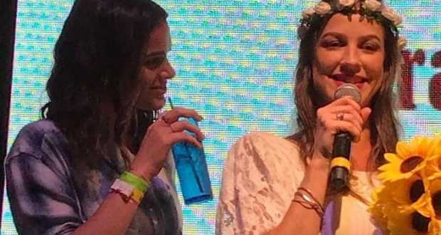 Ainda no palco, a noiva do evento, Luana Piovani, brincou com Bruna: “Do mesmo jeito que eu quis casar, essa quis descasar”.