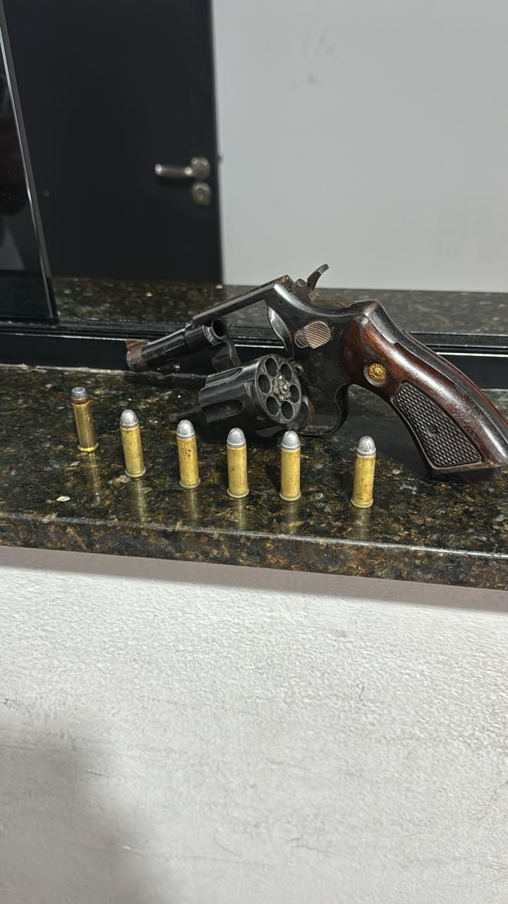 O comerciante disse ainda que F.F.S, de 30 anos, havia jogado uma arma de fogo debaixo do freezer. A arma foi localizada e com F.F.S, foi encontrado um soco inglês. A vítima disse que toda a confusão teria ocorrido, devido ela estar devendo mil e quinhentos para M.M.J. Um dos suspeitos teria dito que era do PCC e que levariam o comerciante para um tribunal do crime. A PM encaminhou todos os envolvidos para a Central de Polícia Judiciária, onde o delegado autuou F.F.S, em flagrante, mas este foi colocado em liberdade, após pagar R$ 3.000,00 de fiança. O revólver foi apreendido.