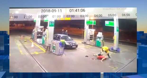 Imagens das câmeras de monitoramento do posto mostram toda ação criminosa. Um homem de camiseta amarela se aproxima das bombas de combustíveis e começa a atacar a vítima (camiseta vermelha) com várias facadas. Em seguida deixa o local caminhando tranquilamente e foi para casa, onde foi localizado pela polícia.