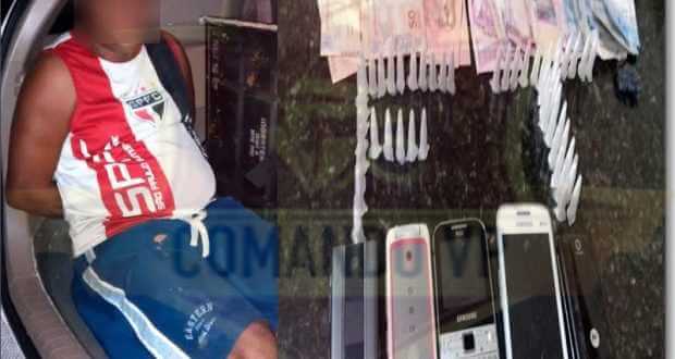 Segundo informações colhidas por nossa equipe de reportagem, o cabo Simão, soldados Izomar e R-Frisene estavam em patrulhamento pela região da Vila Marina, quando foram informado que em um ferro velho situado na rua Bernardino Fernandes Nunes estava ocorrendo tráfico de drogas. Os policiais foram ao local e abordaram o suspeito. Ao ser indagado se tinha droga e dinheiro no local, ele disse que tinha dinheiro, mas droga desconhecia. Os policiais localizaram R$ 390,00 debaixo de um par de tênis e no quintal 52 pinos de cocaína. O averiguado disse que não sabia de quem era a cocaína. Ele foi encaminhado ao Plantão Policial e liberado.