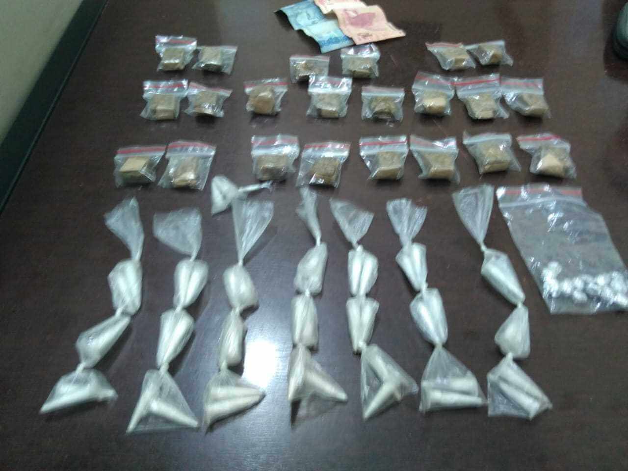 Ele estaria em atitude suspeita e foi abordado. Submetido a busca pessoal e localizados nos bolsos de sua calça 22 porções de maconha, 44 eppendorfs de cocaína, 13 pedras de crack, R$12,00 . Indagado confessou a prática de tráfico de drogas. O mesmo foi conduzido ao Plantão Policial, autuado em flagrante por tráfico de drogas e recolhido ao Centro de Triagem. Nesta sexta-feira por volta das 13:30 ele será encaminhado à audiência de custódia, caso seja mantido preso, será recolhido a um presídio da nossa região.