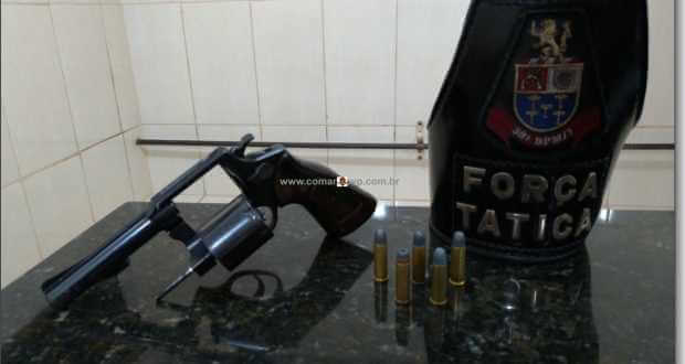 Segundo informações,  policiais militares da Força Tática  receberam denúncia que no local um indivíduo suspeito de participar de crimes  teria arma de fogo.  Os policiais comandados pelo sargento Strozze foram ao local e fizeram contato com D.C.S, de 34 anos, o mesmo negou participação em crime, mas a arma foi localizada na sala. O mesmo disse que comprou a arma por R$ 3.000, 00.