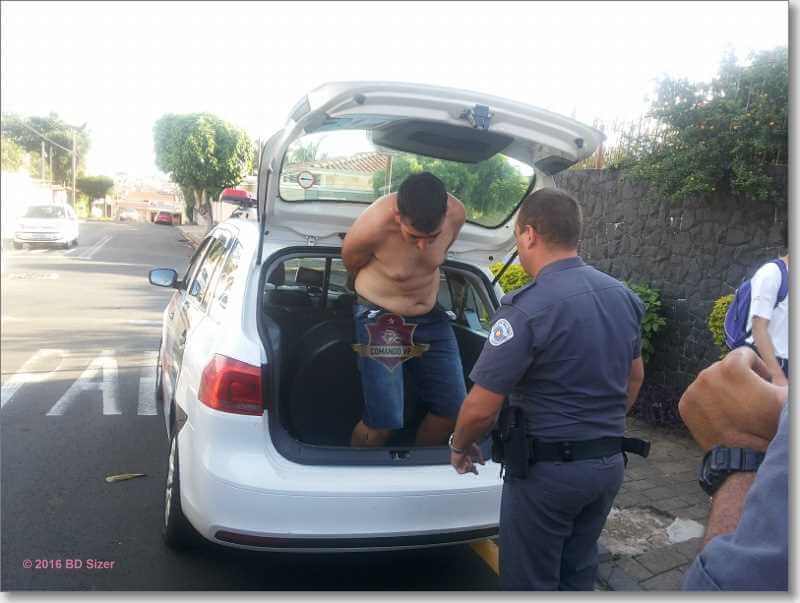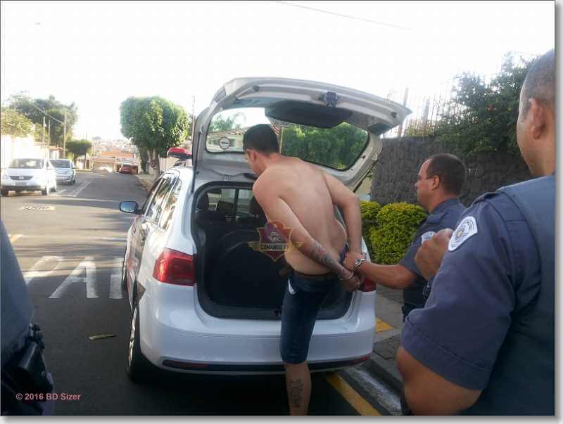 Lucas Citron, de 22 anos, foi preso pela Polícia Militar nesta tarde de terça-feira, 06-12-2016, suspeito de ter participado de um roubo na casa de uma idosa no bairro Nova Estancia , São Carlos-SP.