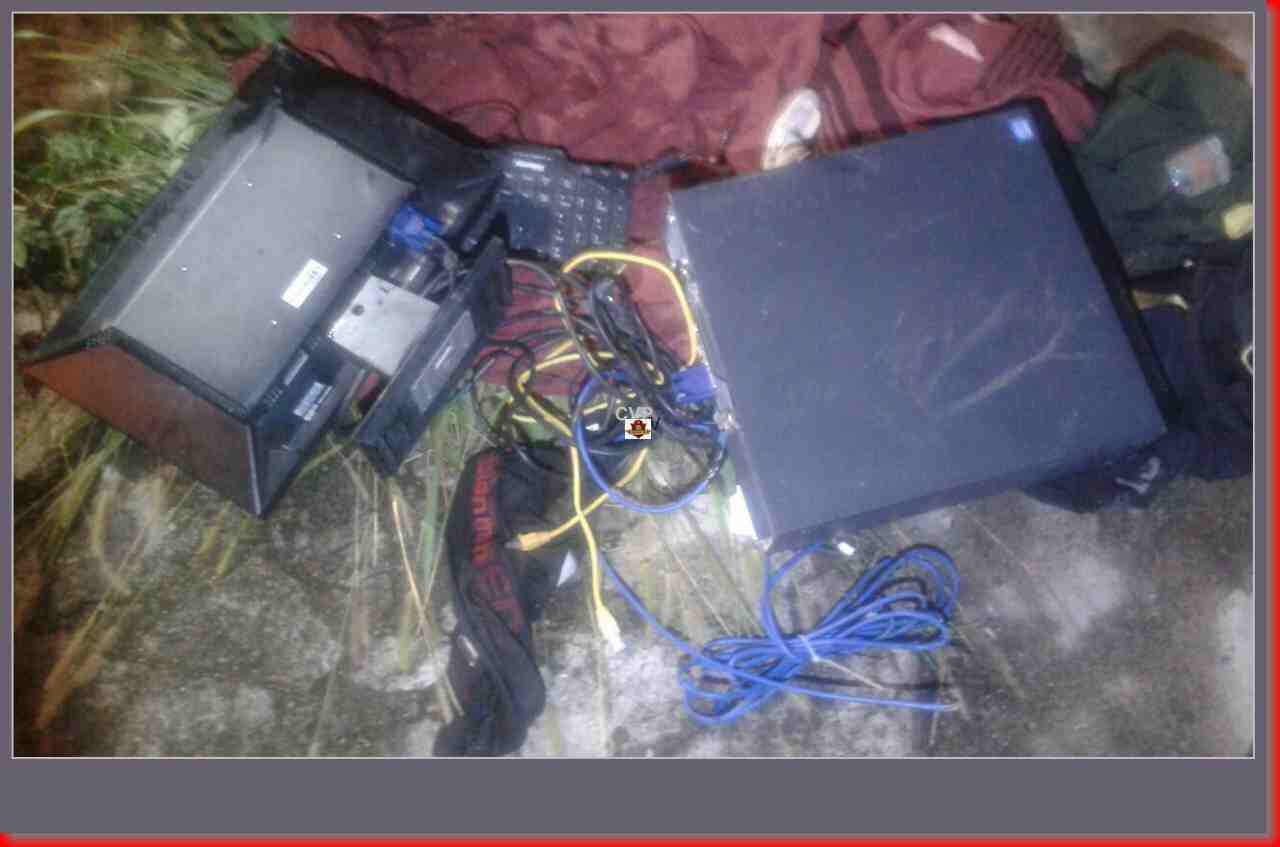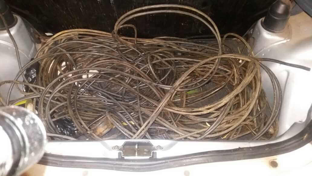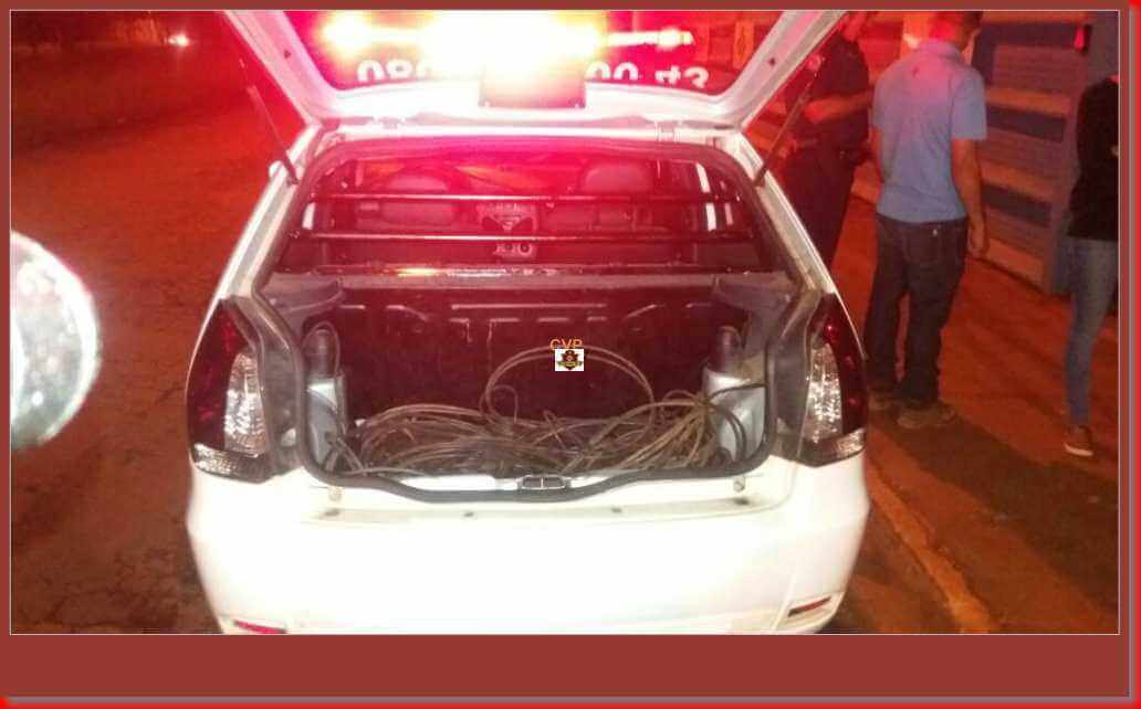 Uma viatura de apoio foi ao local indicado e ainda encontrou grande quantidade de cabos elétricos , como também o local de onde fora subtraído tais objetos.