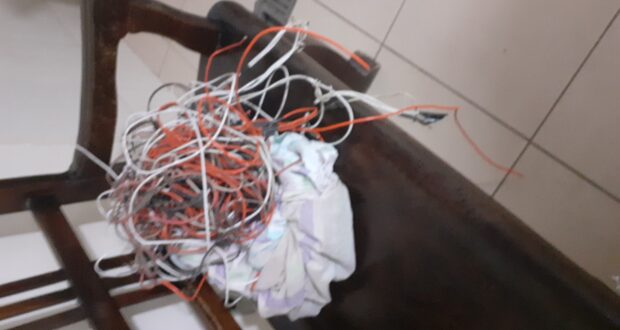 Segundo informações, a ROCAM foi comunicada que um indivíduo havia furtado a fiação de uma casa que está para alugar e deixado o local. Em poder das características, a ROCAM conseguiu abordar o suspeito na Rua Dona Alexandrina, região do Terminal Rodoviário. O mesmo estava com os fios e também com um corte no braço. O corte, segundo a PM, ele sofreu ao tentar adentrar a residência. Diante da situação, C.N, de 31 anos, foi encaminhado à Santa Casa, depois conduzido ao Plantão Policial, autuado em flagrante e recolhido ao Centro de Triagem.
