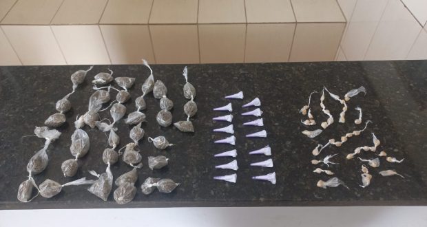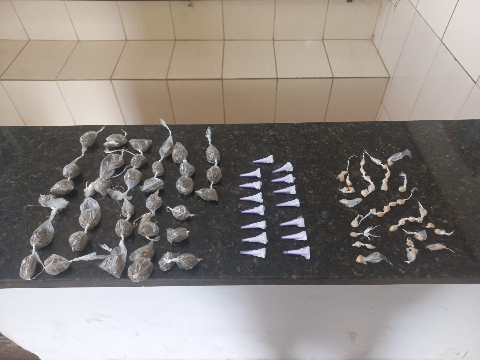 Segundo informações, o tenente Perroni e o cabo Sobral estavam em patrulhamento preventivo, quando avistaram um suspeito na via pública, o qual carregava uma sacola nas mãos. Os PMs realizaram a abordagem e com o averiguado foram localizados 45 invólucros de maconha, 15 pinos de cocaína e 40 invólucros de crack. T.C.M.S, de 20 anos, foi encaminhado para a Central de Polícia Judiciária, onde permaneceu à disposição da justiça. Ainda de acordo com a PM, ele tem 3 passagens pelo mesmo crime, todas quando era menor de idade.