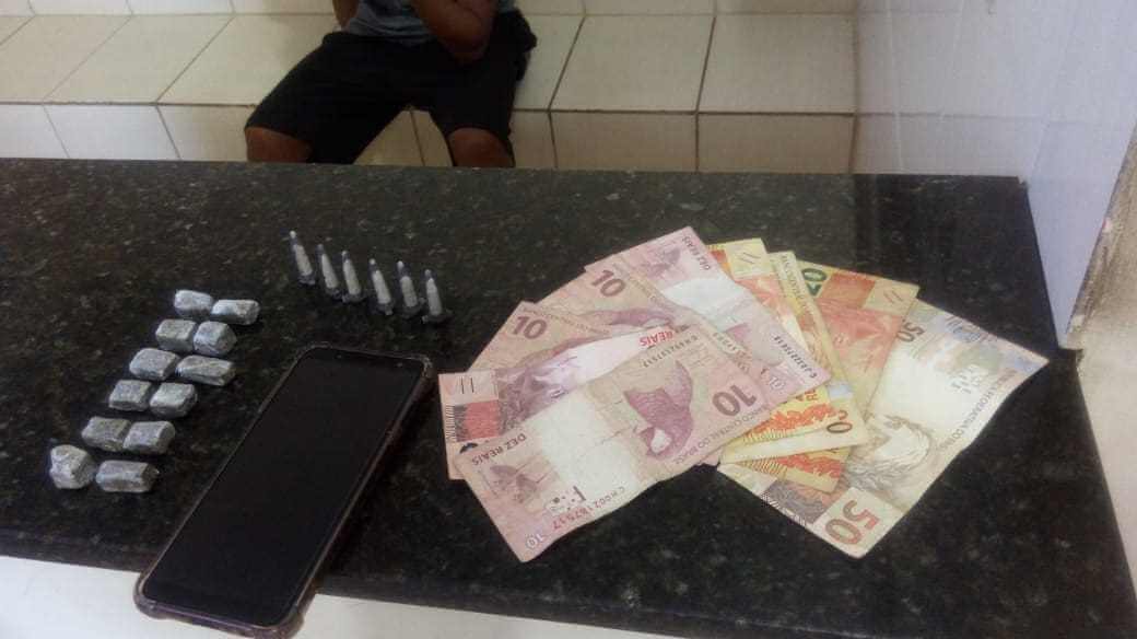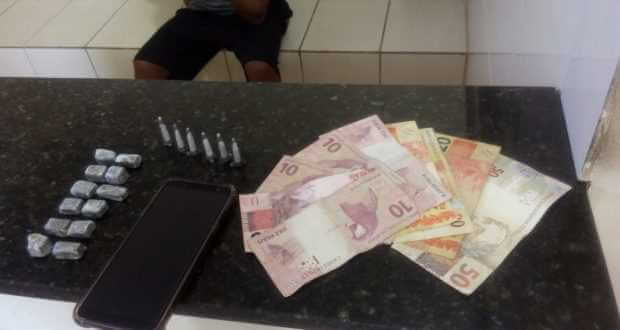 Segundo informações, o soldado Bis e Mesquita foram acionados para o local e o suspeito ao avistar a viatura tentou disfarçar, sentando em um ponto de ônibus. No bolso foram localizados R$ 160,00 e na lixeira 12 invólucros de maconha e 6 pinos com cocaína. O jovem foi conduzido ao Plantão Policial, mas até o fechamento desta matéria não havia sido definida sua situação.