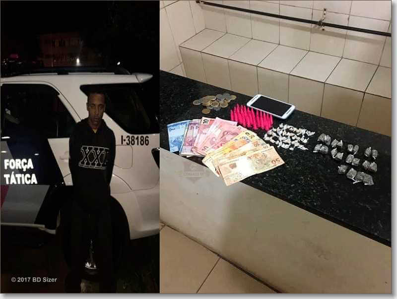 Segundo informações, os a viatura da Força Tática composta pelo sargento Strozze, cabo Frigieri e soldado Rick estava em patrulhamento pela referida rua quando a equipe se deparou com o indiciado Júlio Rodrigues, de 18 anos, que ao avistar a viatura evadiu – se correndo para o interior de uma residência abandonada. Os milicianos conseguiram abordar o Indiciado no interior do imóvel em posse de entorpecentes, dinheiro é um aparelho celular com queixa de subtração. O sujeito, que segundo consta, é morador em Ibaté, foi encaminhado ao Plantão Policial, ficando à disposição da autoridade policial.