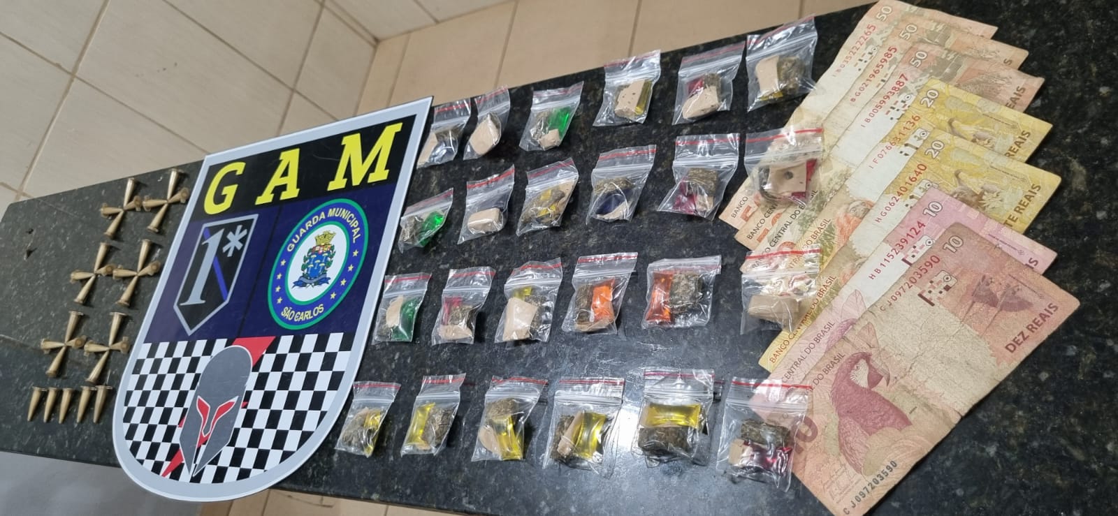 Segundo informações, a GM estava realizando uma operação com a PM e Fiscalização da Prefeitura, quando P.C.T.S, de 27 anos, saiu correndo. Os GMs conseguiram deter o sujeito e com ele foram localizados drogas e dinheiro. Ao ser indagado a respeito das drogas, ele confessou a traficância e disse que tinha mais drogas em um terreno. Todo o entorpecente foi apreendido e a ocorrência encaminhada para a Central de Polícia Judiciária, onde o averiguado foi autuado em flagrante por tráfico de drogas e recolhido ao Centro de Triagem de São Carlos.