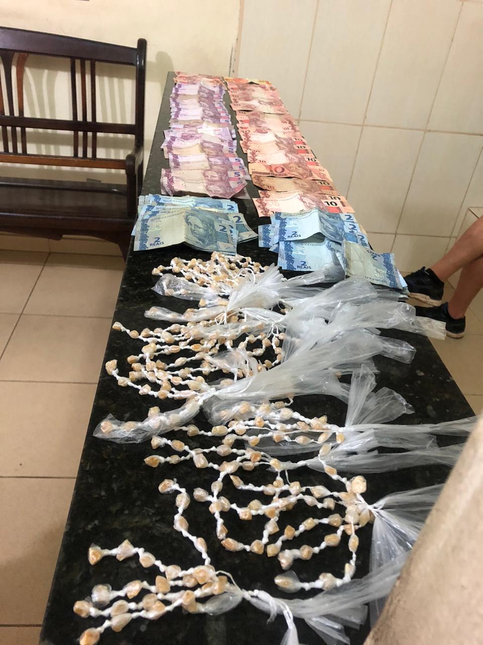 A equipe acompanhou o indivíduo e realizou a abordagem e foi localizado no bolso da bermuda 335 pedras de crack e R$420,00.