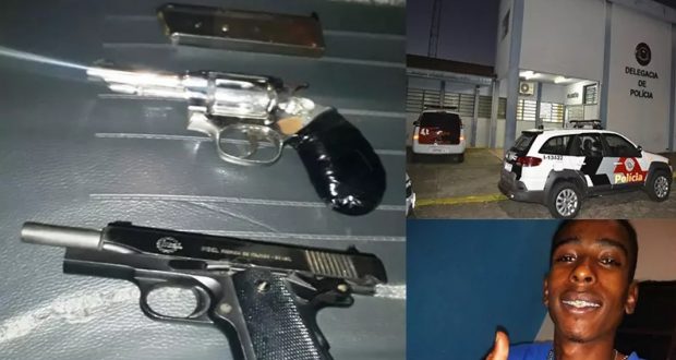 Viaturas isolaram a área para o trabalho dos peritos do IC (Instituto de Criminalística), duas armas de fogo, do criminoso, foram localizadas e apreendidas.
