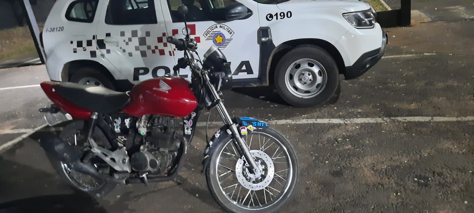 Na noite de terça-feira, 06-08-2024, policiais militares de Ibaté-SP, apreenderam uma moto com queixa de furto. De acordo com informações, a moto foi abandonada por dois suspeitos na Av. Antônio Jorge, esquina com a Rua Araraquara, bairro Jardim Cruzado.