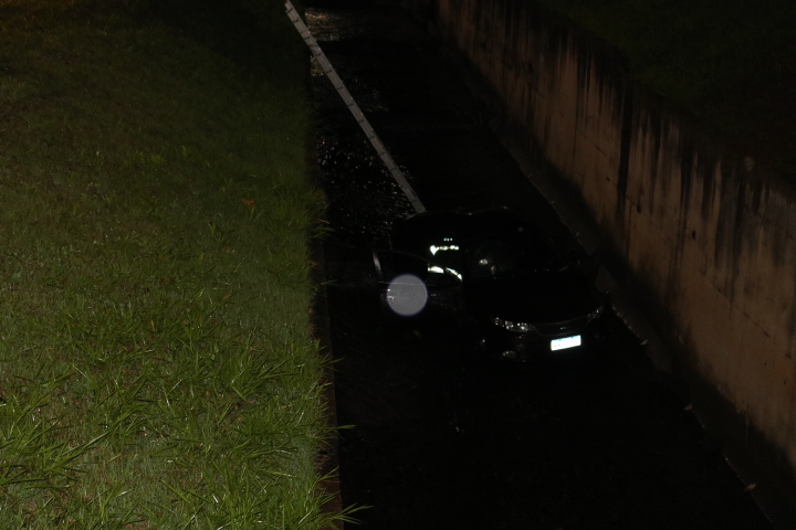 Técnico de enfermagem bêbado é detido pela PM após “jogar” carro dentro de córrego