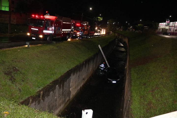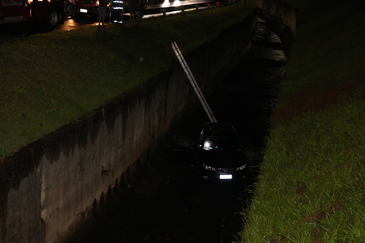 Um técnico de enfermagem foi detido pela PM após avançar dois pares e  “jogar” um carro no córrego nesta noite de sábado, 29-10-2022, na Avenida Trabalhador São-carlense, região do Campus Um da USP, São Carlos-SP.
