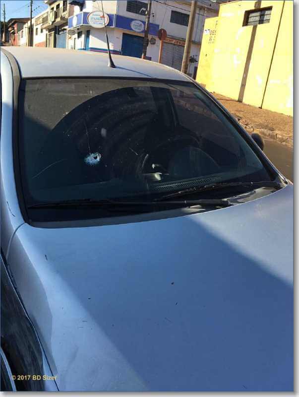 Domingo, 06-08-2017, rua Jesuíno de Arruda, esquina com a rua Rui Barbosa, região central de São Calos-SP, local que por pouco três pessoas não acabaram baleadas por dois assaltantes que sem hesitar efetuaram disparos de arma de fogo.