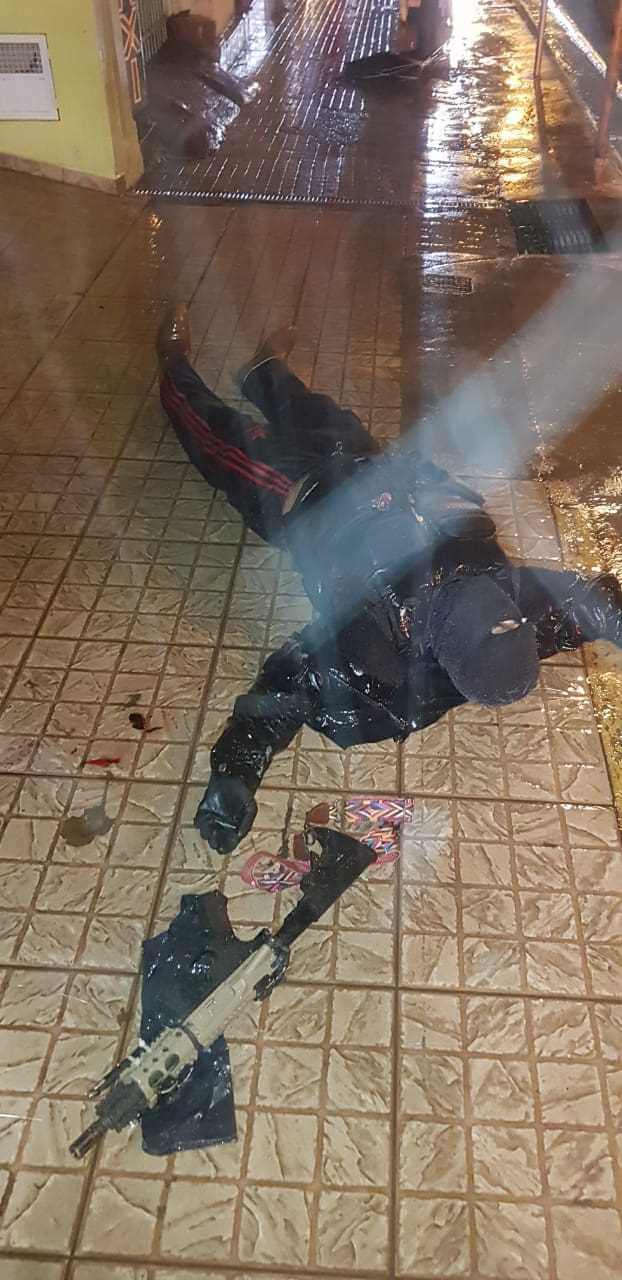 Durante a ocorrência, os criminosos renderam e atiraram contra uma mulher.