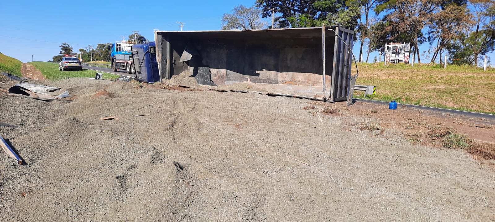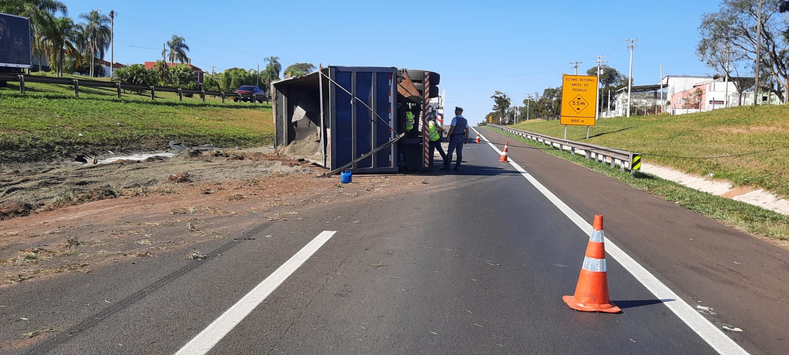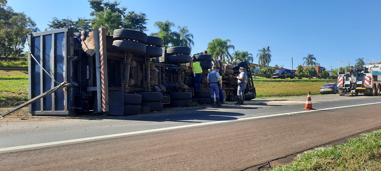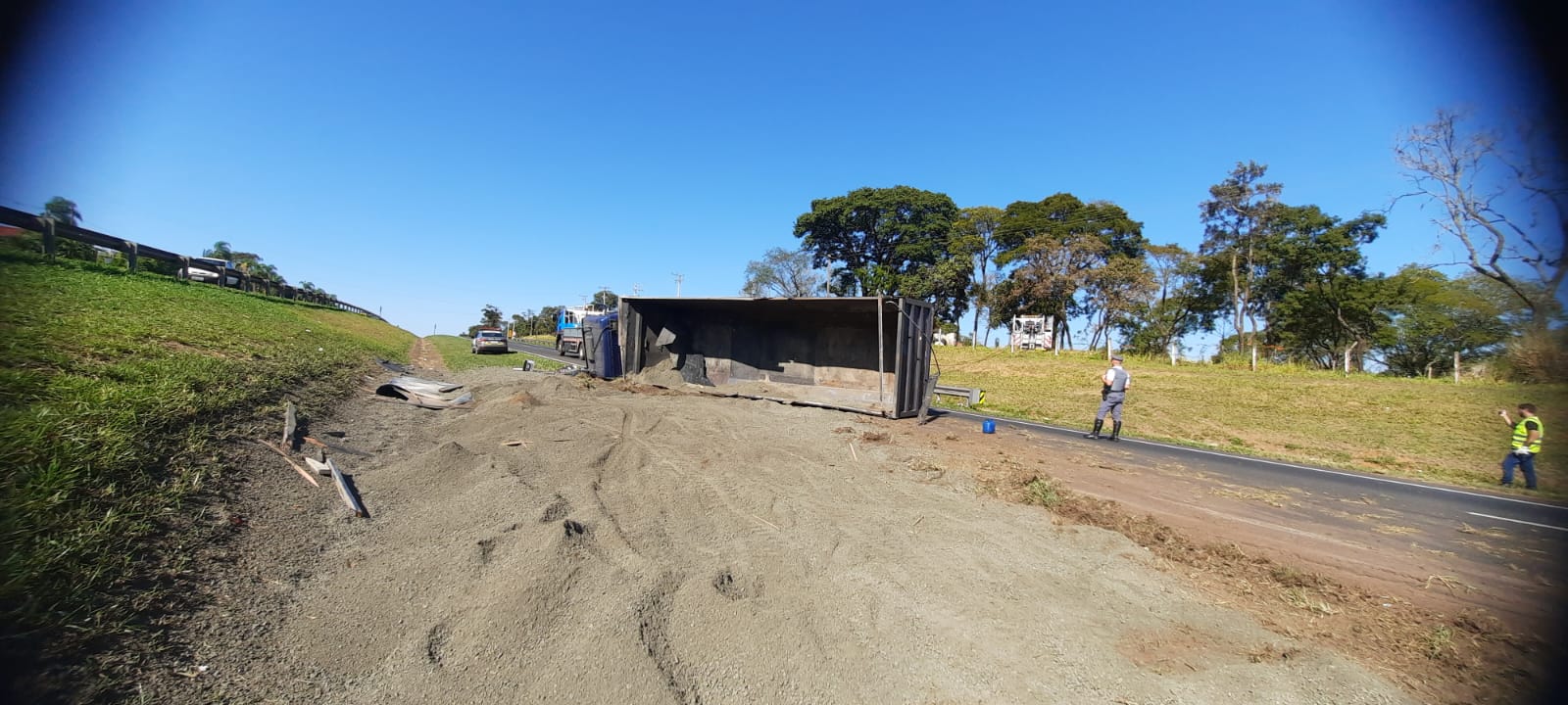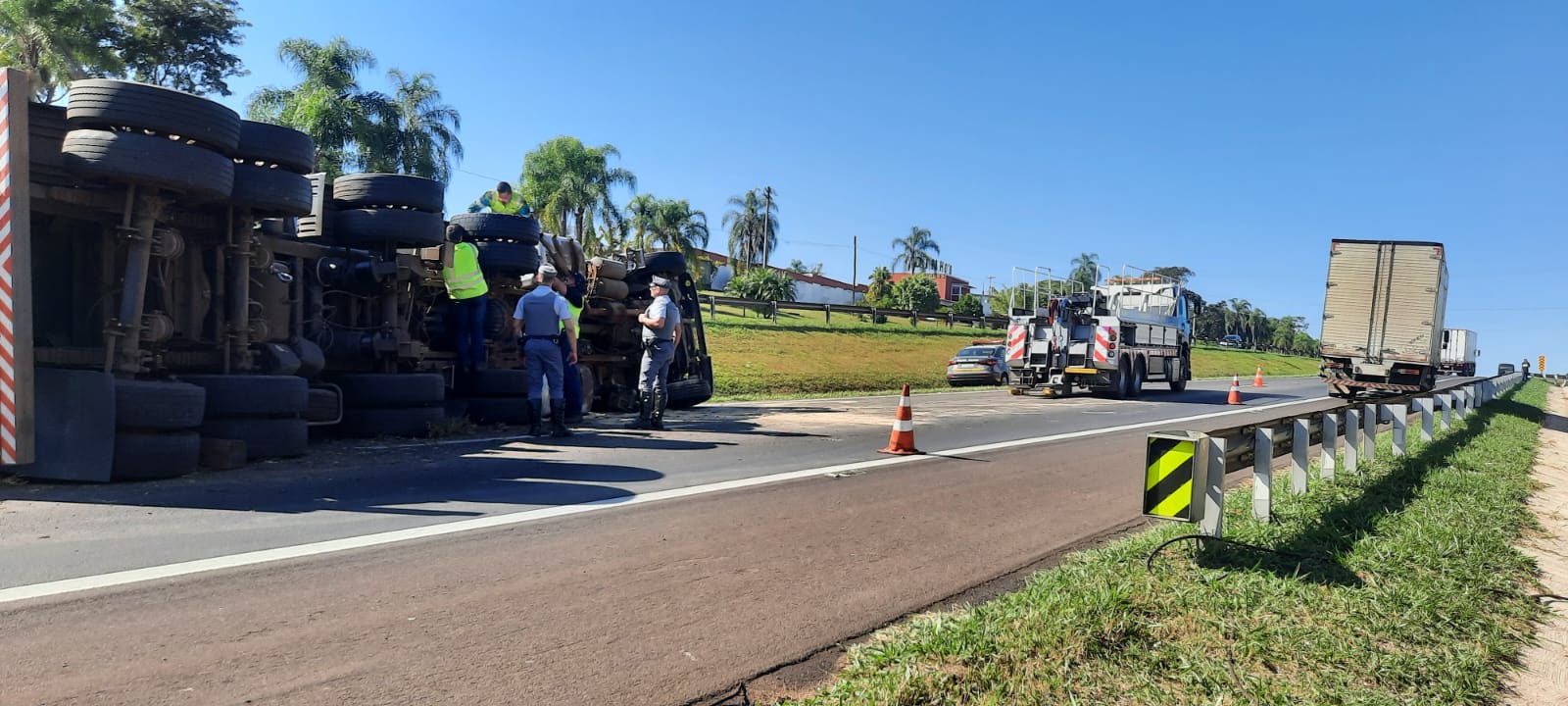 De acordo com informação, o homem de 44 anos conduzi o caminhão no sentido sul, teria perdido o controle da direção e tombado. O motorista nada sofreu, mas foi socorrido para avaliação médica. A Polícia Militar Rodoviária e a concessionária que administra a rodovia estiveram no local e tomaram todas as medidas cabíveis. O trânsito ficou muito lento e causou um grande congestionamento.
