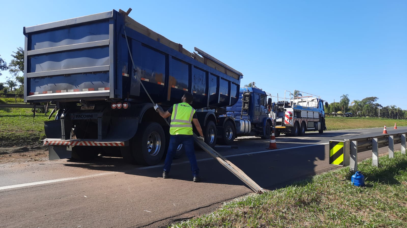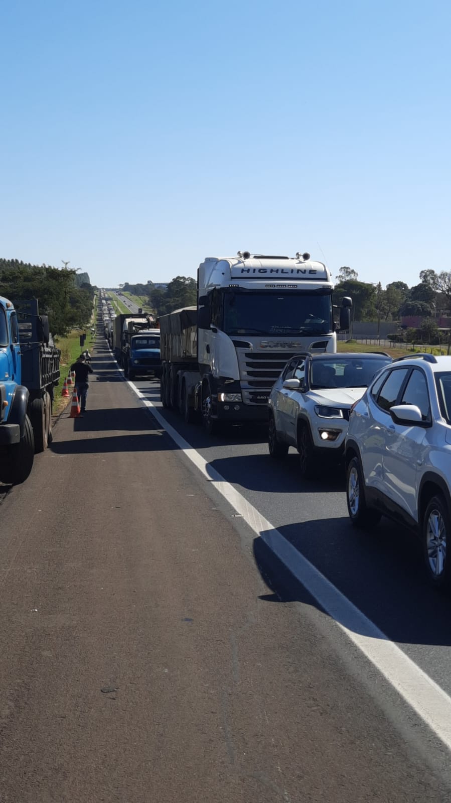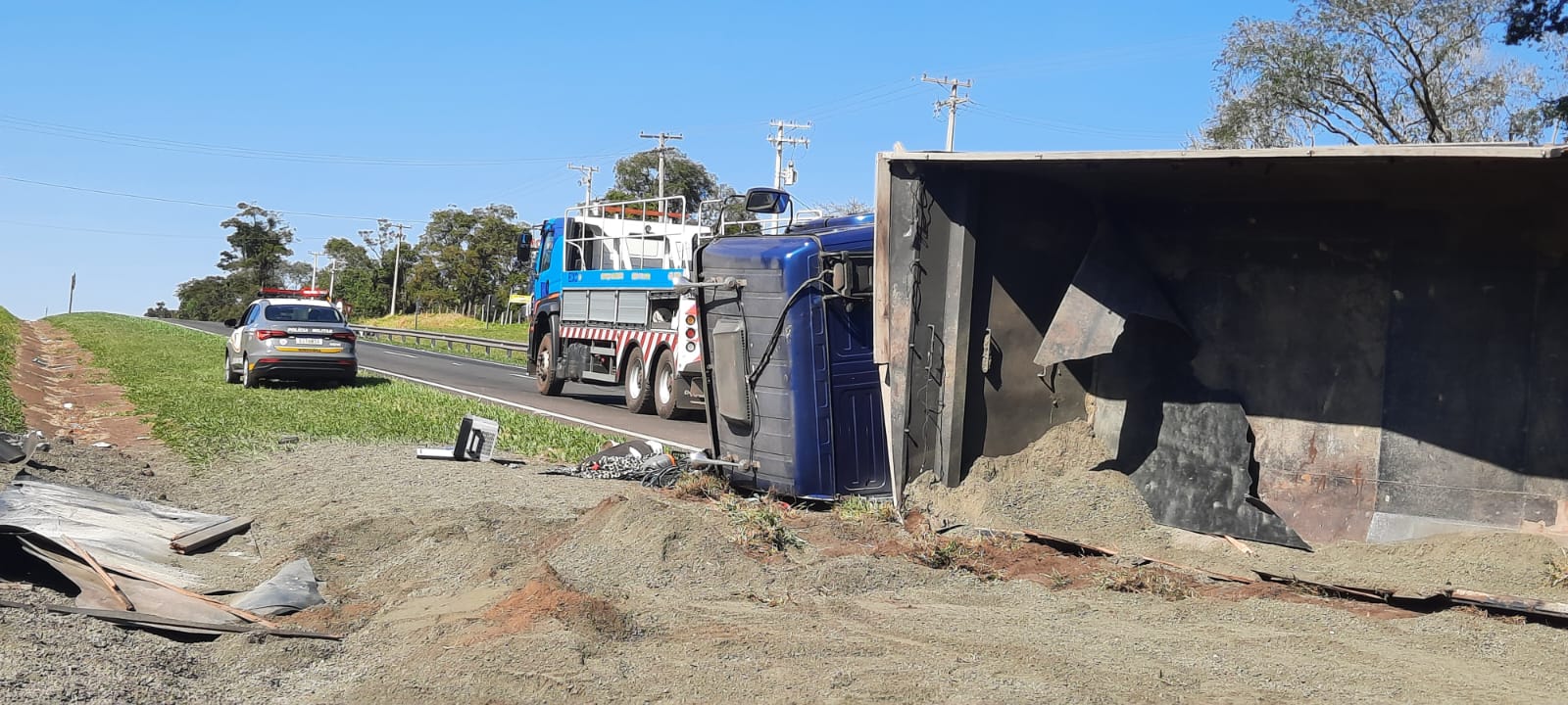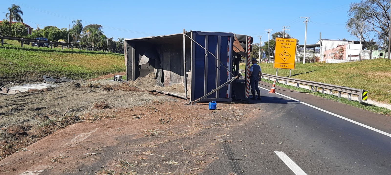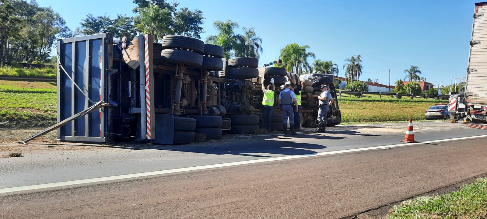De acordo com informação, o homem de 44 anos conduzi o caminhão no sentido sul, teria perdido o controle da direção e tombado. O motorista nada sofreu, mas foi socorrido para avaliação médica. A Polícia Militar Rodoviária e a concessionária que administra a rodovia estiveram no local e tomaram todas as medidas cabíveis. O trânsito ficou muito lento e causou um grande congestionamento.