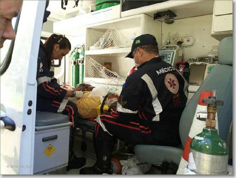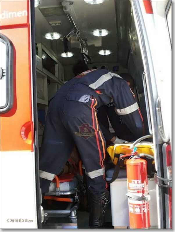 O Corpo de Bombeiros foi para o local e quando estava socorrendo a vítima, na região da fábrica da Volkswagen o pneu da viatura do Corpo de Bombeiros estourou e o SAMU foi acionado. A Unidade de suporte Avançado (USA) foi para o local e encaminhou seu Denivaldo Ferreira Pena, de 41 anos, à Santa Casa. A nossa equipe entrou em contado com a assessoria de imprensa da Santa Cassa e foi informada que o estado de saúde da vítima é considerado gravíssimo.