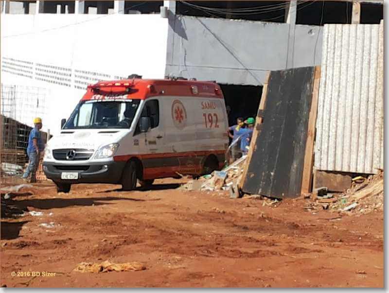Um trabalhador ficou gravemente ferido nesta tarde de terça-feira, 20-12-2016, e foi socorrido pelo SAMU e encaminhado à Santa Casa, em um acidente de trabalho na rua Mario Azevedo Correa, cruzamento com a rua Dr. Serafim Vieira de Almeida, bairro Jd. Paraíso, São Carlos-SP.