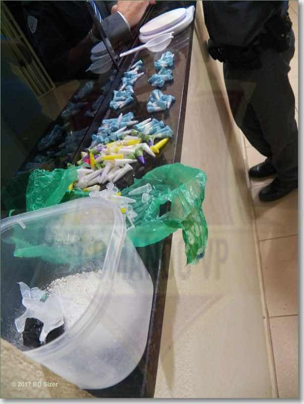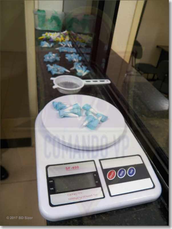 Carlos Henrique Crivellaro, de 47 anos, segundo a PM, foi detido momento que embalava as drogas na sua casa na referida  rua . Os PMs cabos Estevo, Tiago e soldado  Prado encaminharam o averiguado ao Plantão Policial, onde ele disse que era apenas usuário e que a cocaína era para seu consumo. O delegado não acreditou que ele iria cheirar 139 pinos de cocaína e começou elaborar o flagrante de tráfico de droga no indivíduo que cumpriu pena por roubo. Quando ele percebeu que voltaria para a cadeia, então resolveu inventar mais uma história. Ele disse para os policiais que aquele pó branco nos pinos não era cocaína. Ele disse que embalava o pó e mandava os menores vender, mas que não era cocaína. Sendo assim o delegado resolver então chamar a Polícia Cientifica para verificar se o detido estava  falando a verdade. O perito Vinicius foi ao Plantão e em poucos minutos examinou o pó e constatou que era cocaína. Diante da situação, o delegado Dr. Adriano Callsen Alexandrino autuou Carlos em flagrante por tráfico de drogas e o recolheu ao Centro de Triagem de São Carlos.