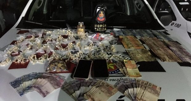 Um homem de 33 anos foi detido pela Força Tática nesta noite quinta-feira, 16-02-2023, em poder de drogas e dinheiro. De acordo com informações, a equipe do sargento Caon estava em saturação pelo bairro Vila Pureza, quando no cruzamento da Rua Conselheiro Soares Brandão, com a Paulino Botelho de Abreu Sampaio, um veículo Gol, ocupado por um casal saiu em fuga. O condutor empreendeu fuga. No trajeto o suspeito de 33 anos dispensou uma sacola com droga. Os policiais conseguiram abordar o carro e deter o casal. No interior do veículo foram encontrados mais entorpecentes. O casal foi encaminhado para a Central de Polícia Judiciária, o masculino foi autuado em flagrante e recolhido ao Centro de Triagem. A mulher foi colocada em liberdade.