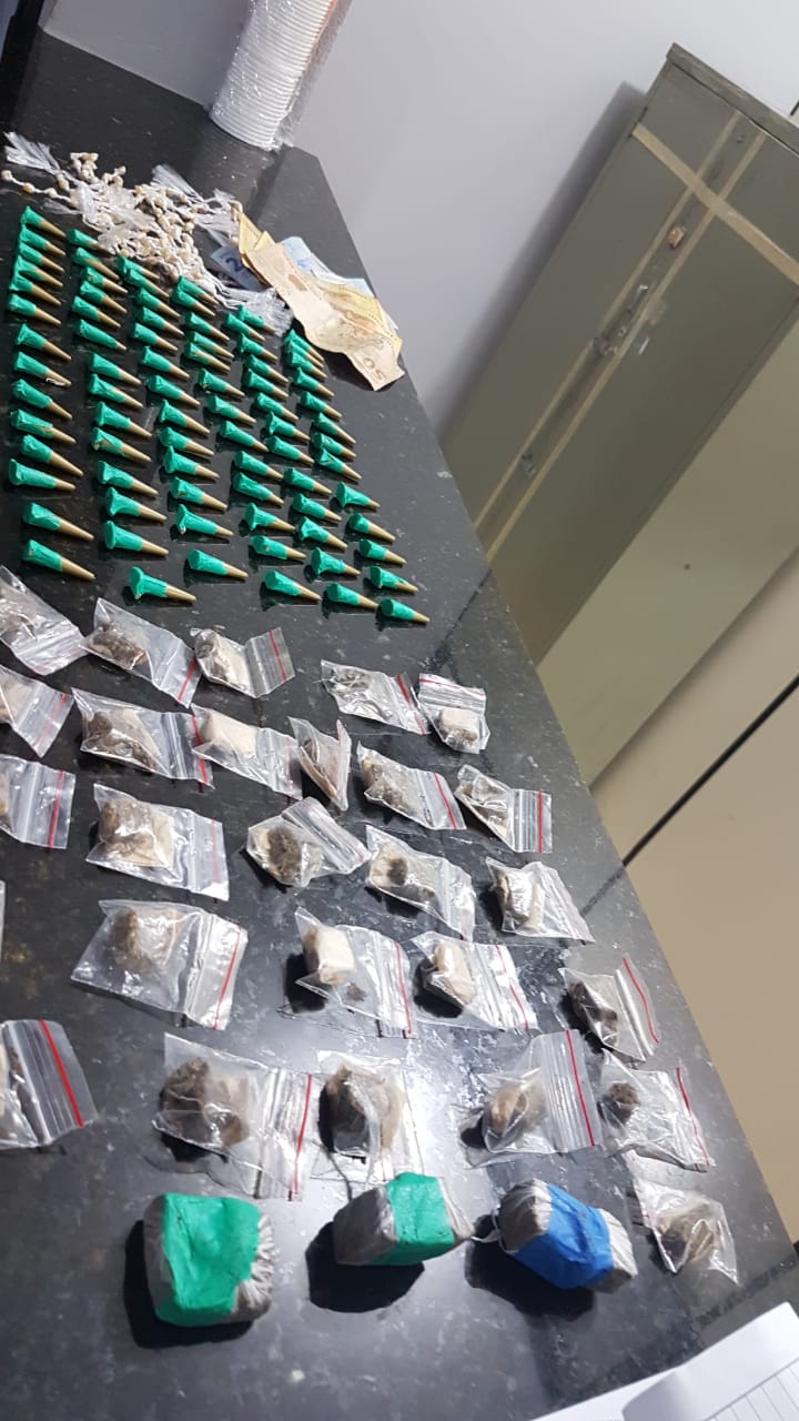 Segundo consta, os PMs, cabo Lima, Mesquita Wiliam, abordaram R.B.O e na pochete foram localizados as drogas e dinheiro. O jovem foi conduzido à Central de Flagrante, autuado em flagrante e recolhido ao Centro de Triagem.