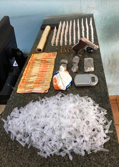 O indivíduo de 24 anos oi autuado em flagrante pelo delegado Marcelo Umberto Borghi por tráfico de drogas, receptação e porte ilegal de arma e munições e recolhido à Cadeia de Santa Ernestina.