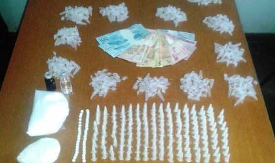 Os policiais localizaram 419 gramas de cocaína, R$ 507,00 , 220 pinos vazios, 2 ampolas e 40 comprimidos, de origem não identificada.