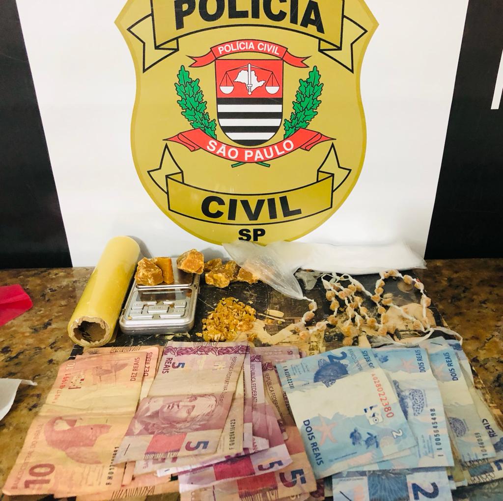 Investigações realizadas pela equipe da D.I.S.E. culminaram na identificação de um imóvel na Vila Boa Vista, em São Carlos, utilizado para guarda e posterior distribuição de entorpecentes. Ato contínuo foi dado cumprimento ao mandado de busca e apreensão no local, resultando na prisão em flagrante de G.P.S.V., 21 anos, restando apreendidas porções de crack prontas para comercialização, bem como em pedra bruta; além de dinheiro e apetrechos utilizados para o fracionamento e embalo desse determinado entorpecente.