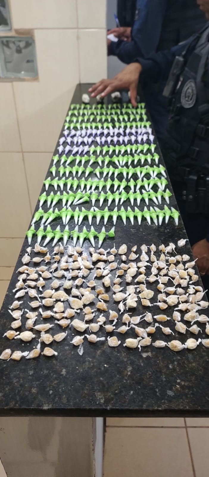 Segundo informações, a GM estava em patrulhamento pelo bairro Jóquei Clube, quando um sujeito saiu correndo e fugiu. Nas proximidades onde ele estava, foram localizados 413 pinos de cocaína, 181 pedras de crack e 04 tabletes de maconha. As drogas foram encaminhadas para a Central de Polícia Judiciária, onde foram apreendidas pelo delegado, Dr. Gilberto de Aquino.